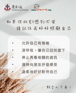 當出現不安的情緒,可以嘗試向朋友分享你內心的感受,互相聆聽和陪伴,一起面對這個過程。